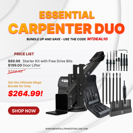 View full detailsThe Essential Carpenter Duo combines a Starter Kit with free drive bits and a Door Lifter—built for carpenters who want reliable tools for every pr...